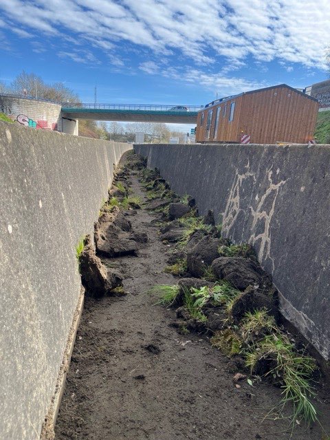 Nous l'avons démontré c'est environ 2T/km de poussières de pneu qui encombrent notre réseau. Ces poussières sont entrainés par l'eau et arrive dans le réseau hydraulique: fossés, aqueducs, canalisation s, bassin de rétention ou d'orage... Les agents des routes les débouchent, les nettoient, plusieurs fois par an (sans savoir quoi en faire: donc remis dans la nature). Les techniques pour entretenir ce réseau hydraulique, brosse à haute vitesse, souffleur, aspiration, remettent en suspension ces poussières. À noter que nous ne portons pas de protections et personne n'est venu nous voir sur les difficultés que nous rencontrons. Bref c'est une gestion de la collectivité par l'efficience et la résilience, contraire au droit : "y'a qu'à"; "faut qu'vous"; "c'est comme ça"; "si tu n'es pas content tu dégages"