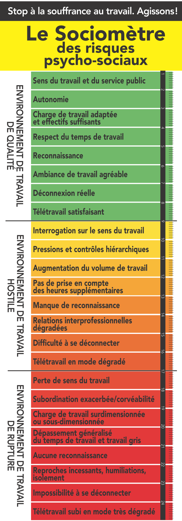 La CGT CD85 met à disposition des outils pertinents pour aborder les problématiques liées aux risques psychosociaux. Des outils pour vous auto-évaluer et un test anonyme pour que la CGT CD85 puisse appréhender le stress par service et par catégorie.